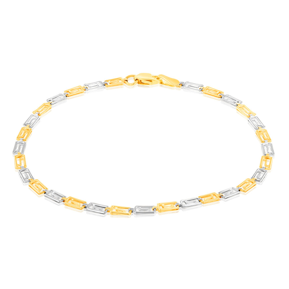 9ct Yellow And White Gold Fancy Rectangle Links 19.1cm Bracelet