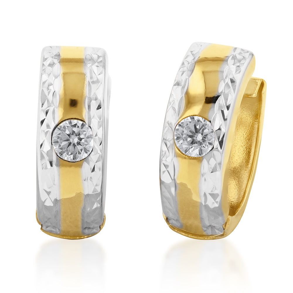 9ct Yellow And White Gold Silverfilled Cubic Zirconia 10mm Hoop Earrings