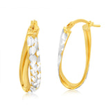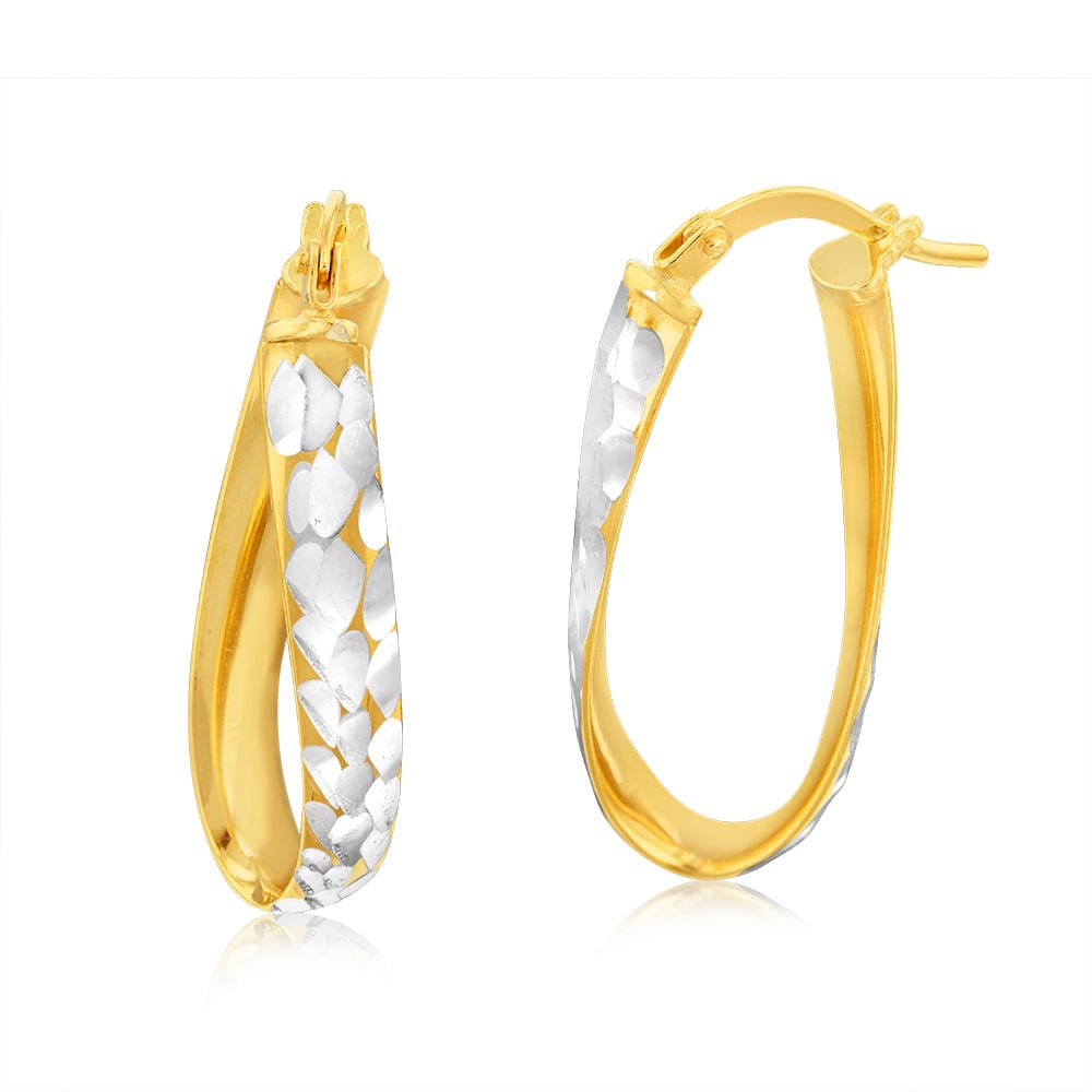 9ct Yellow And White Gold Silverfilled Diamond Cut Oval Hoop Earrings