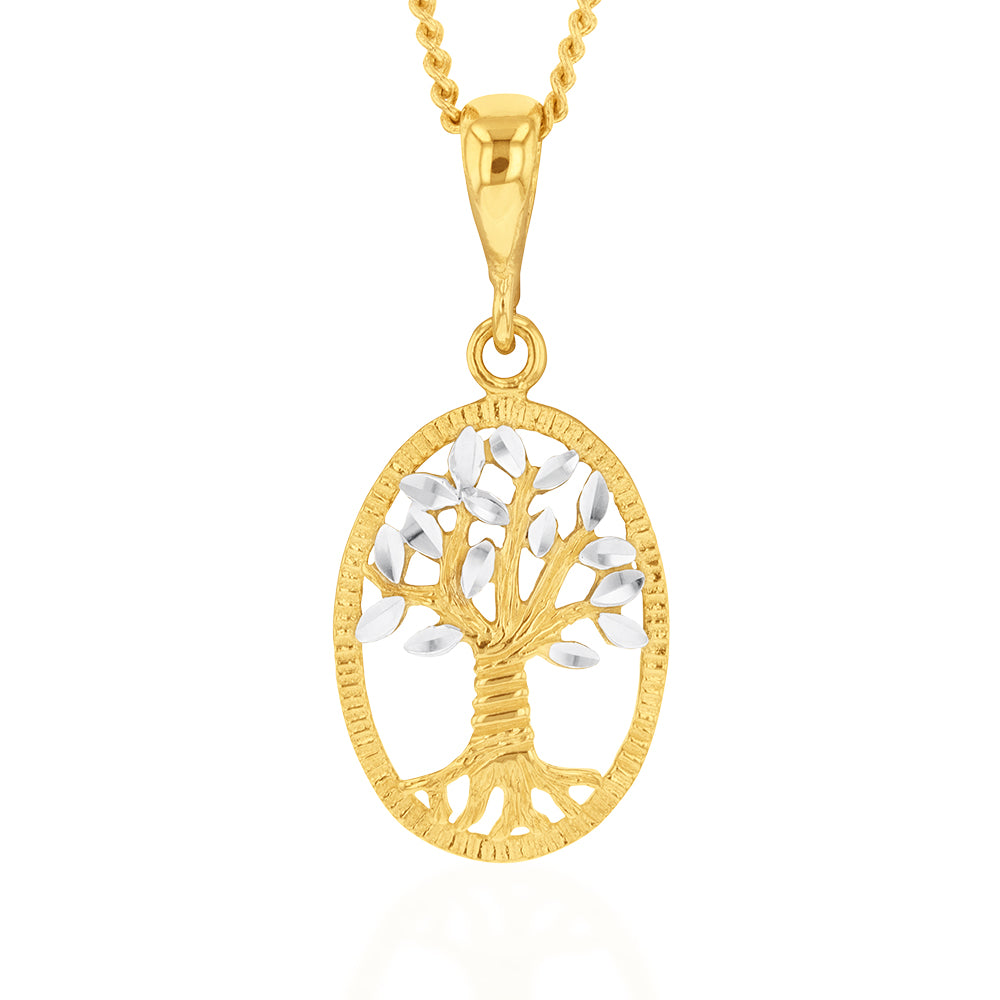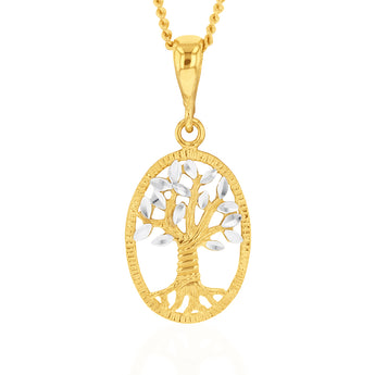 9ct Yellow And White Gold Tree Of Life Diamond Cut Pendant
