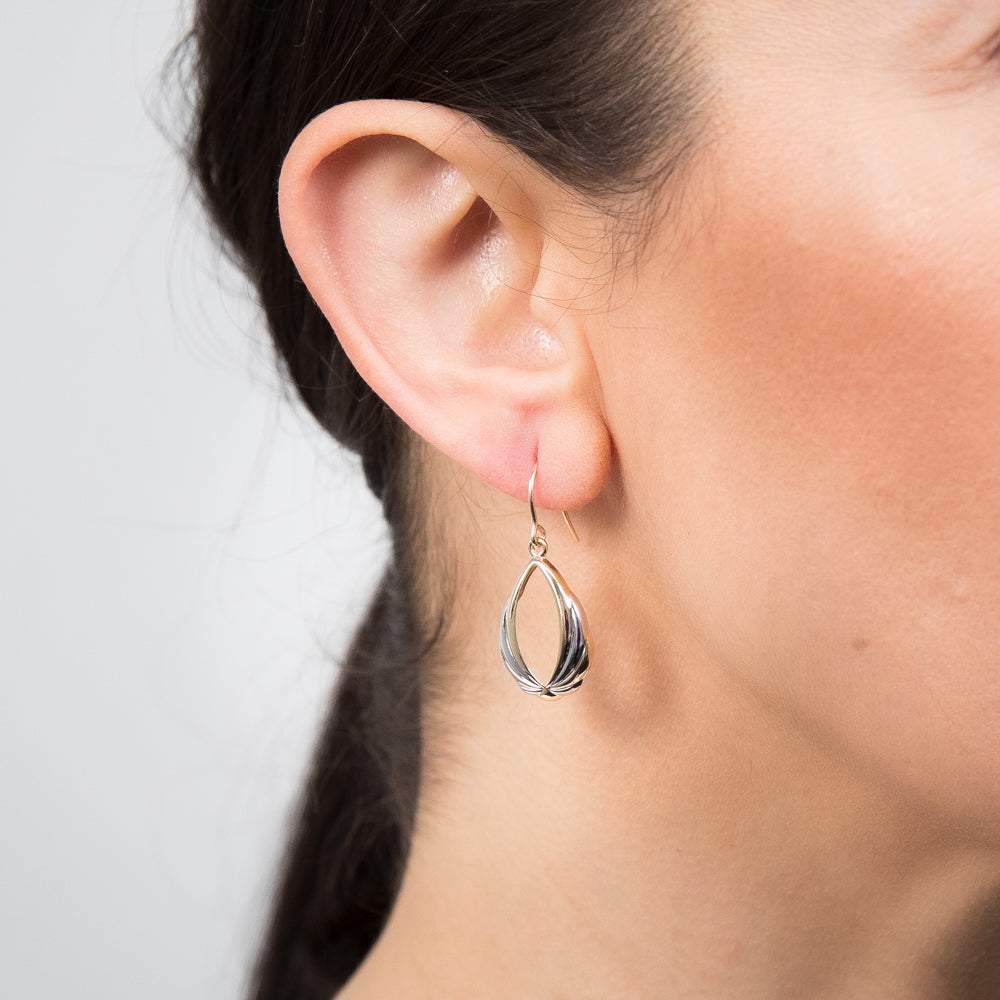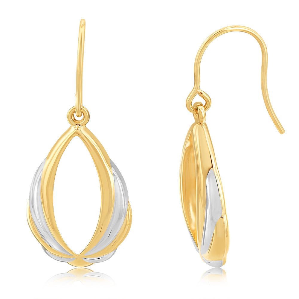 9ct Yellow And White Gold Twisted Pear Shaped Drop Earring