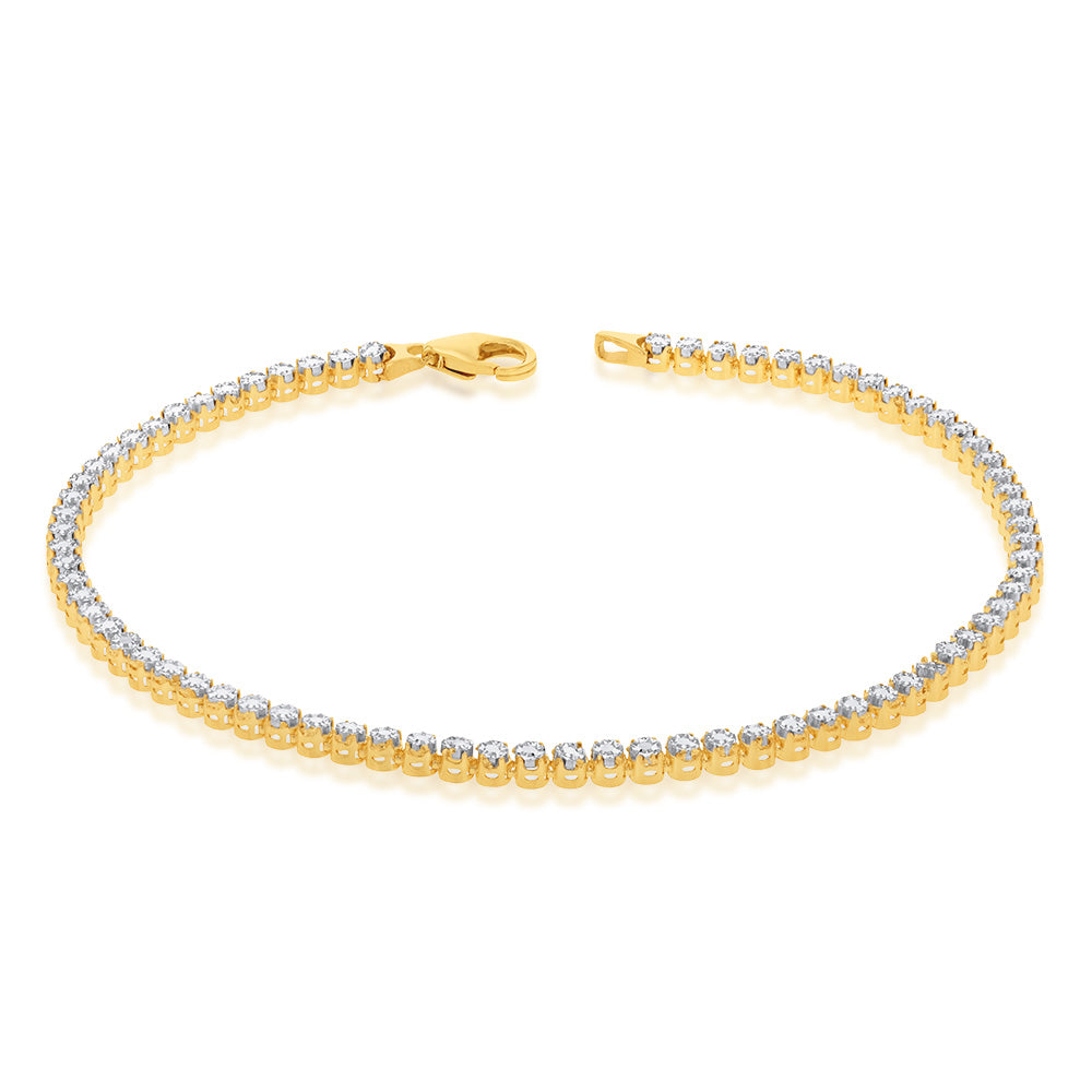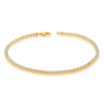 9ct Yellow And White Gold Two Tone Diamond Cut 19cm Tennis Bracelet