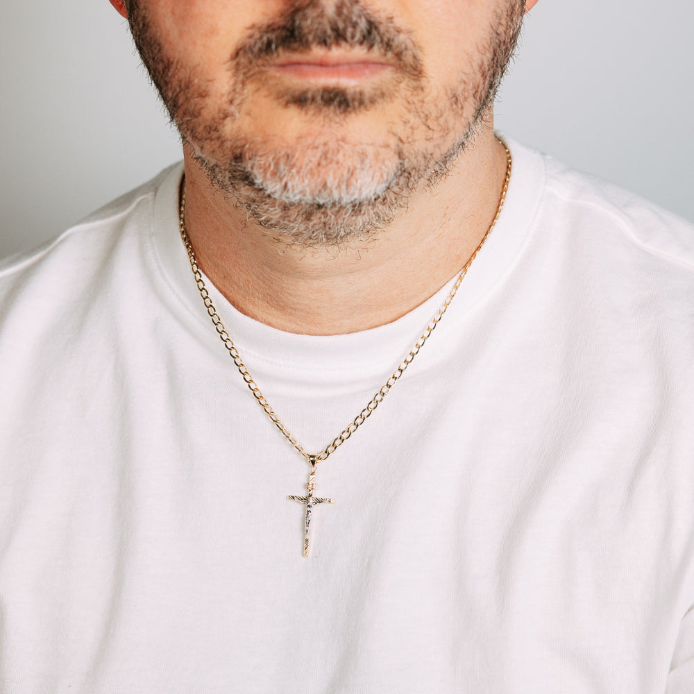 9ct Yellow And White Gold Two Tone Diamond Cut 35mm X 19mm Crucifix Pendant