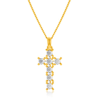 9ct Yellow And White Gold Two Tone Diamond Cut Fancy Cross Pendant