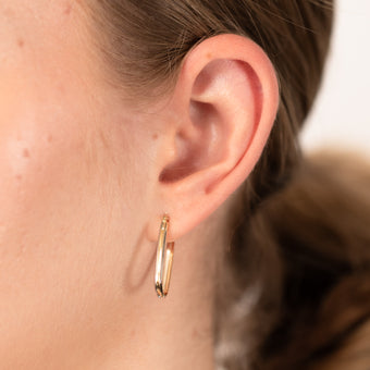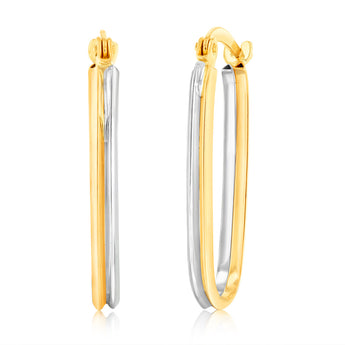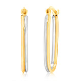 9ct Yellow And White Gold Two Tone Elongated Hoop Earring
