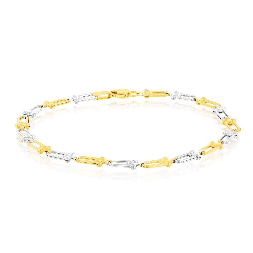 9ct Yellow And White Gold Two Tone Fancy 19.1cm Bracelet