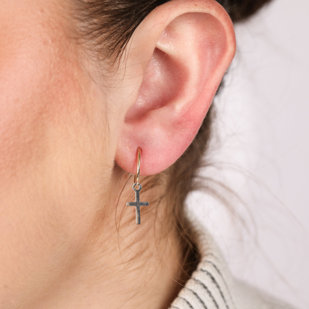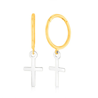 9ct Yellow And White Two Tone Gold Cross On Sleeper Earrings