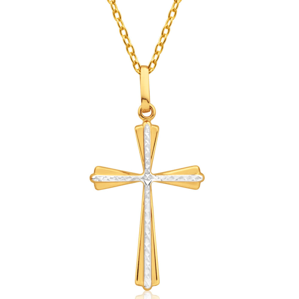 9ct Yellow And White Two Tone Gold Cross Pendant