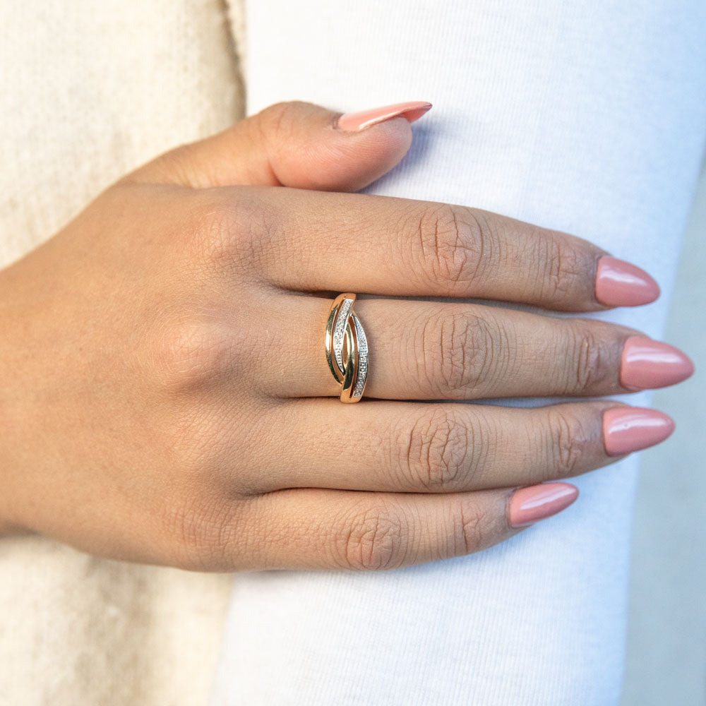 9ct Yellow Gold 0.04 Carat Diamond Ring with 8 Brilliant Cut Diamonds
