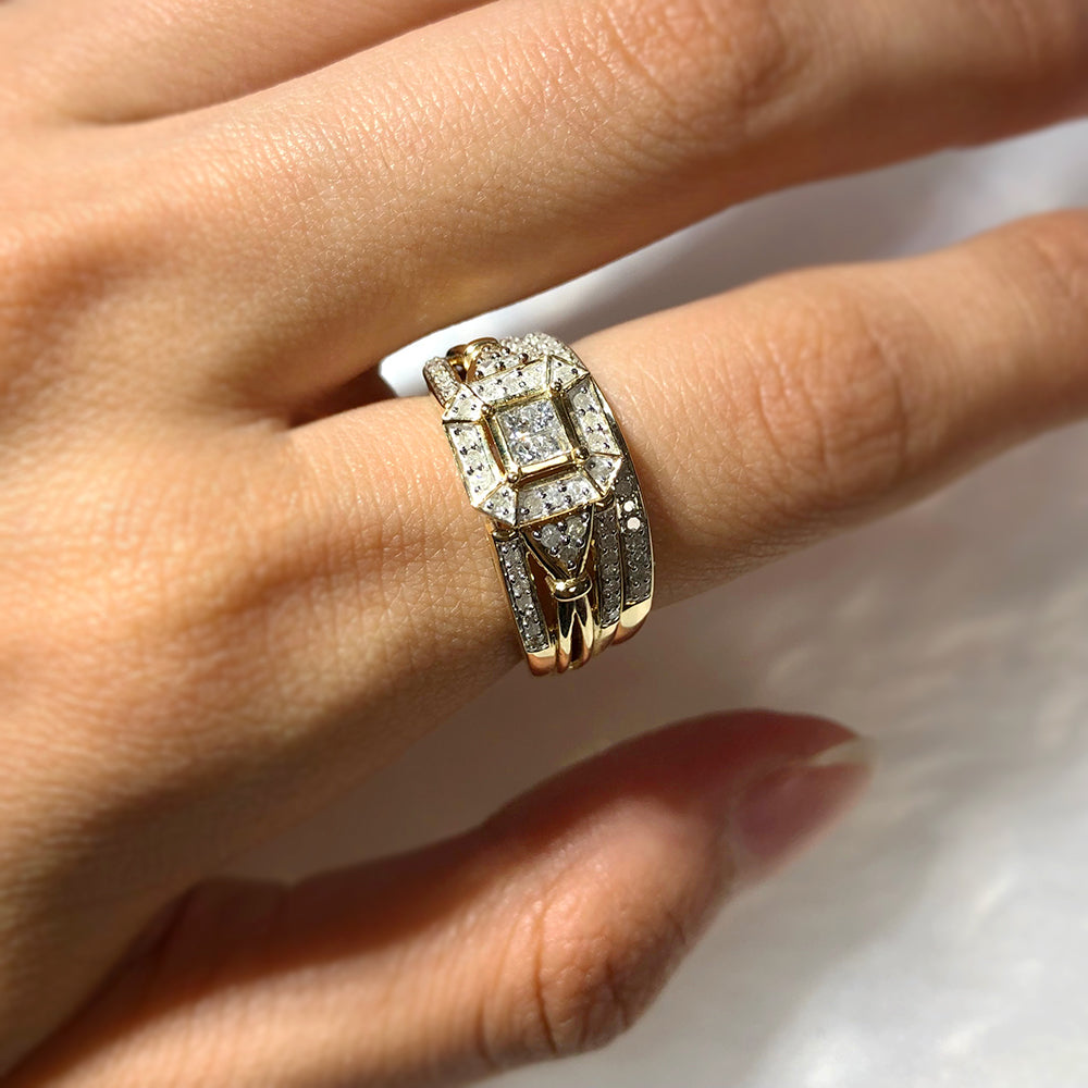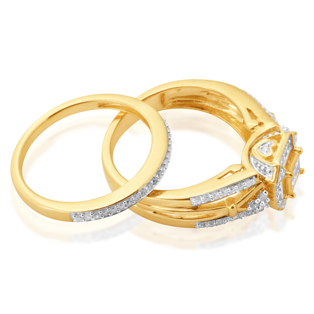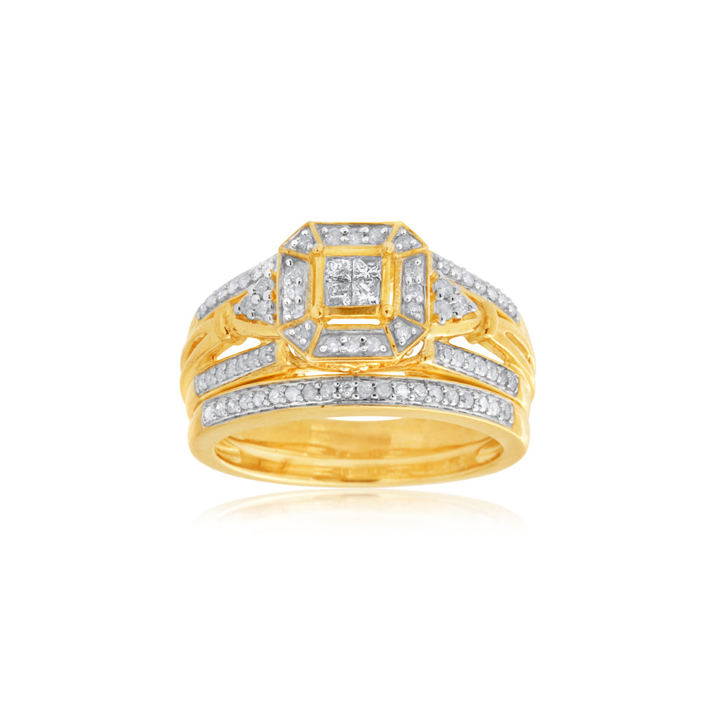 9ct Yellow Gold 0.45 Carat Diamond Bridal 2 Ring Set