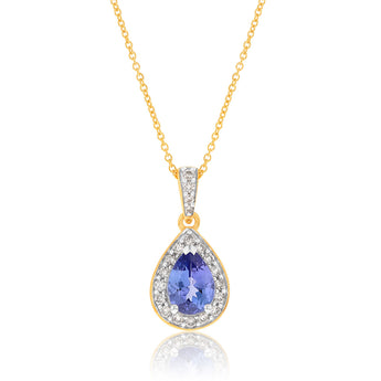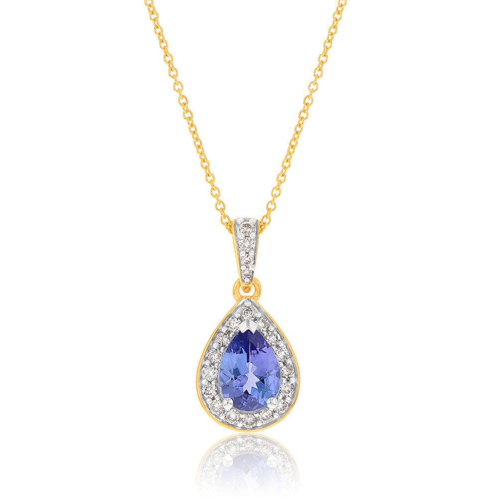 9ct Yellow Gold 0.75ct Tanzanite and 0.15 Carat Diamond Pear Pendant on 45cm Chain