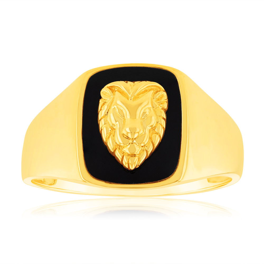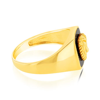 9ct Yellow Gold 0.77Ct Agate Lion Gents Ring
