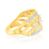 9ct Yellow Gold 1/10 Carat Diamond Ring set with 55 Round Brilliant Cut Diamonds in Disc Setting