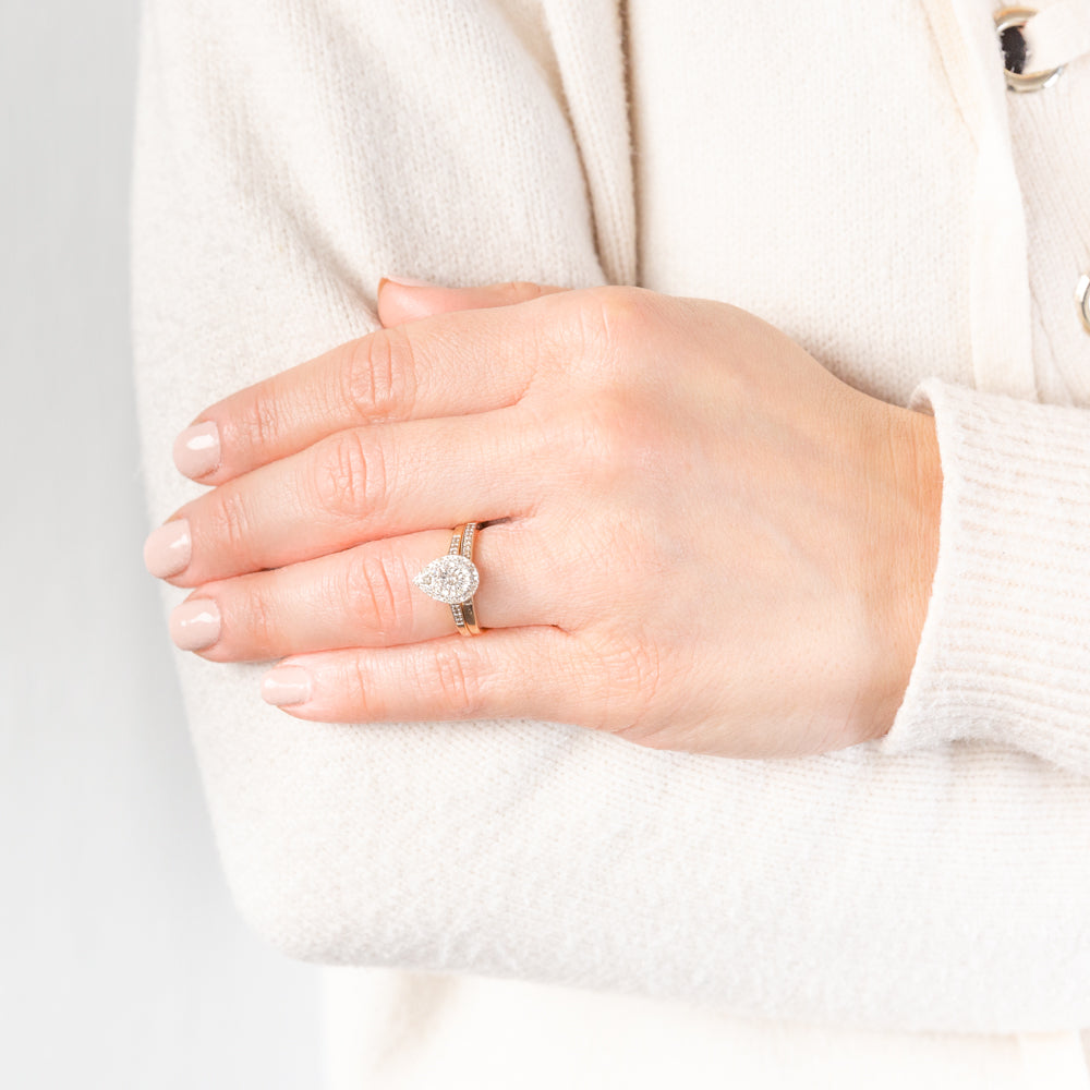 9ct Yellow Gold 1/2 Carat Cluster Diamond Bridal Set Ring