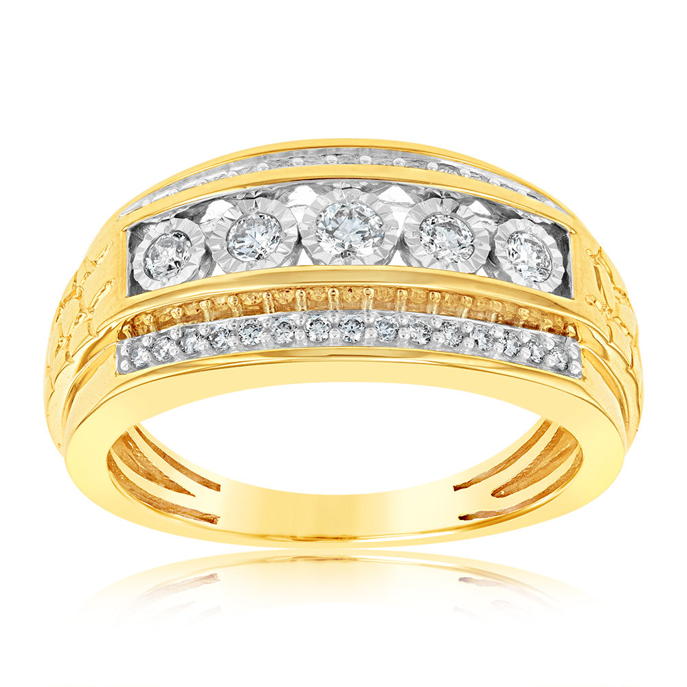 9ct Yellow Gold 1/2 Carat Diamond Mens Ring