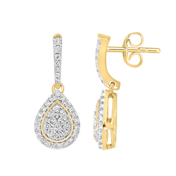 9ct Yellow Gold 1/2 Carat Diamond Pear Shaped Earrings