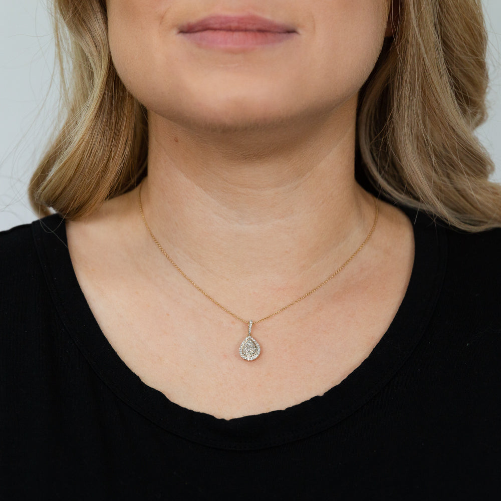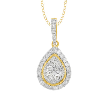 9ct Yellow Gold 1/2 Carat Diamond Pear Shaped Pendant on 45cm Chain