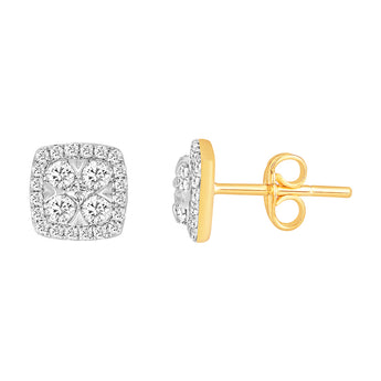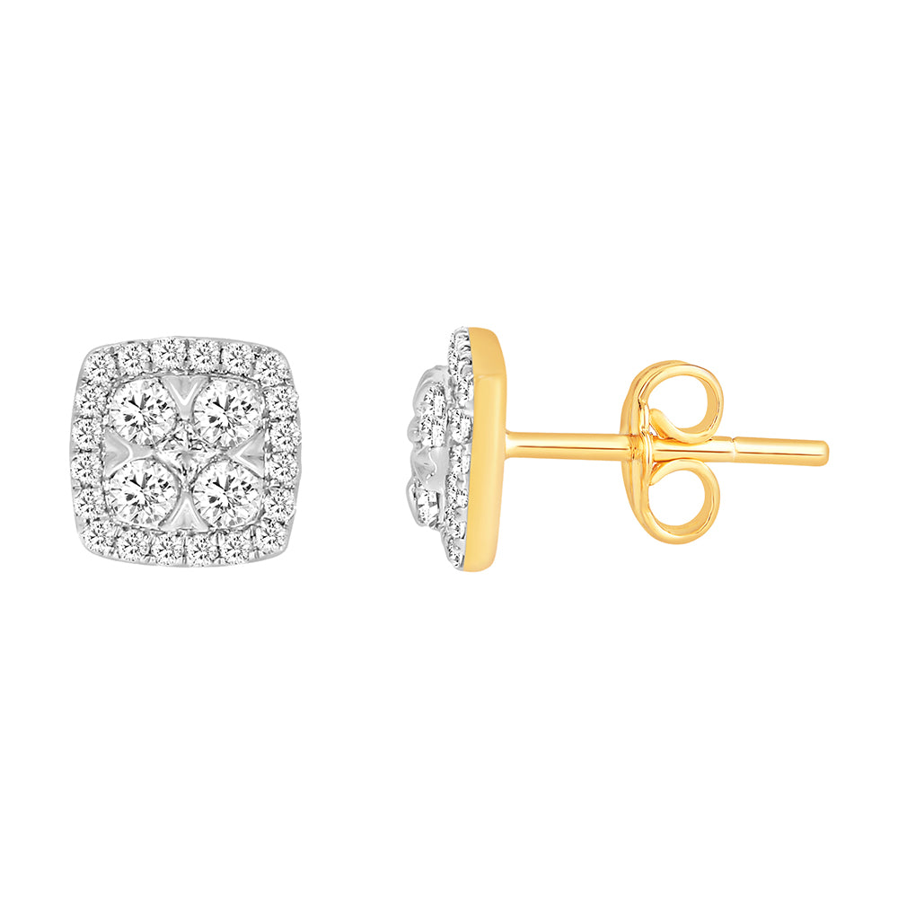 9ct Yellow Gold 1/2 Carat Diamond Studs with 2 Princess and 48 Brilliant Diamonds