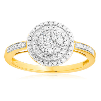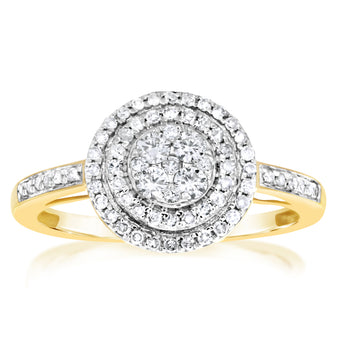 9ct Yellow Gold 1/2 Carat Halo Diamond Ring