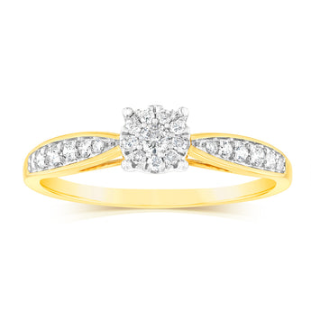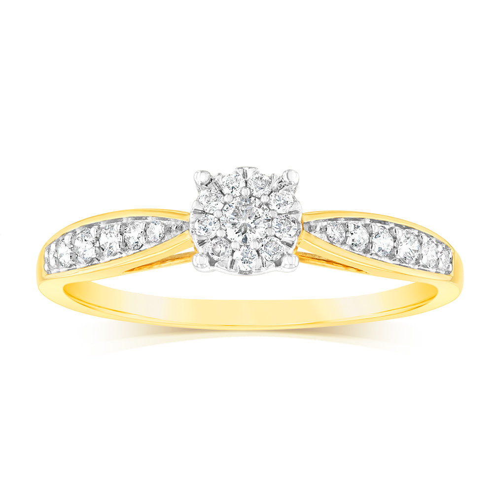 9ct Yellow Gold 1/3 Carat Diamond Halo Solitaire Ring