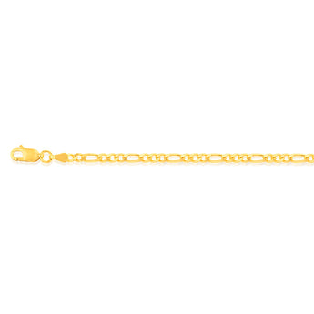 9ct Yellow Gold 1:3 Figaro 80Gauge 27cm Anklet