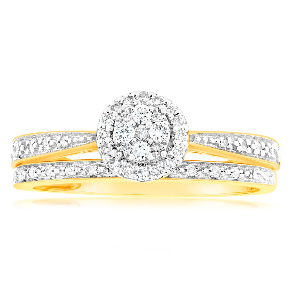 9ct Yellow Gold 1/4 Carat Diamond Bridal Ring Set
