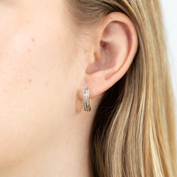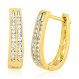 9ct Yellow Gold 1/4 Carat Diamond Double Row Hoop Earrings