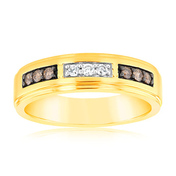 9ct Yellow Gold 1/4 Carat Diamond Ring with White and Champagne Diamonds