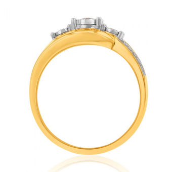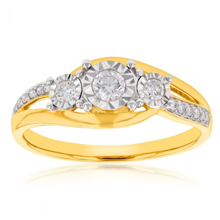 9ct Yellow Gold 1/4 Carat Diamond Trilogy Ring both