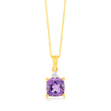 9ct Yellow Gold 1.4ct Amethyst and Diamond Pendant
