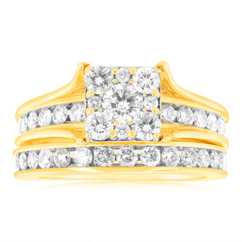 9ct Yellow Gold 1.5 Carat Diamond 2 Ring Bridal Set