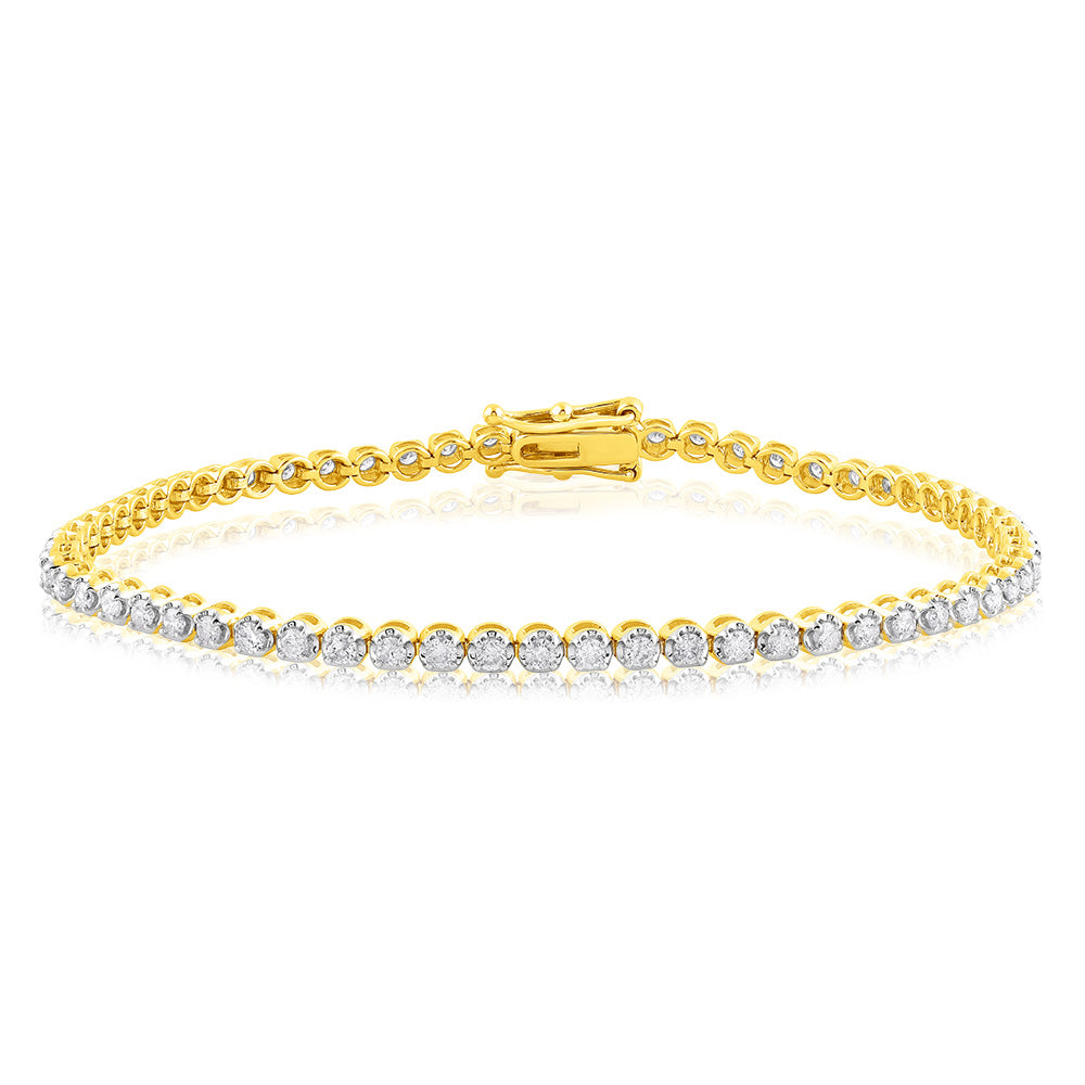 9ct Yellow Gold 1.5 Carat Natural Diamond 18cm Bracelet in