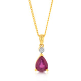 9ct Yellow Gold 1.50ct Natural Enhanced Ruby and Diamond Pendant on 9ct 45cm Chain