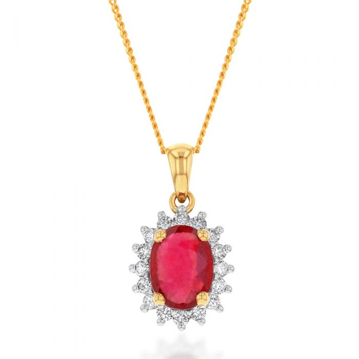 9ct Yellow Gold 1.60ct Natural Enhanced Ruby and Diamond Pendant