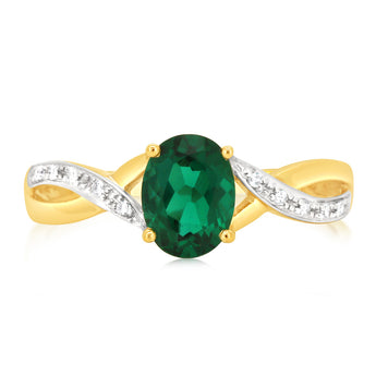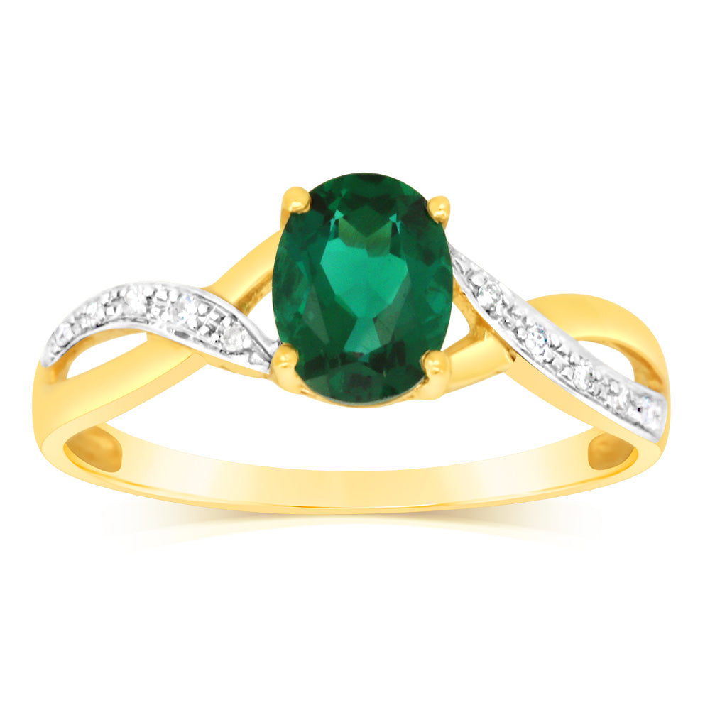 9ct Yellow Gold 1.8 Carat Created Emerald & 10Diamonds Ring