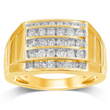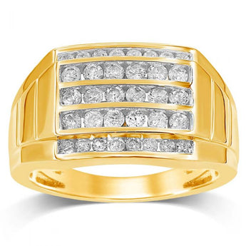 9ct Yellow Gold 1 Carat 5 Row Channel Set Diamond Mens Ring