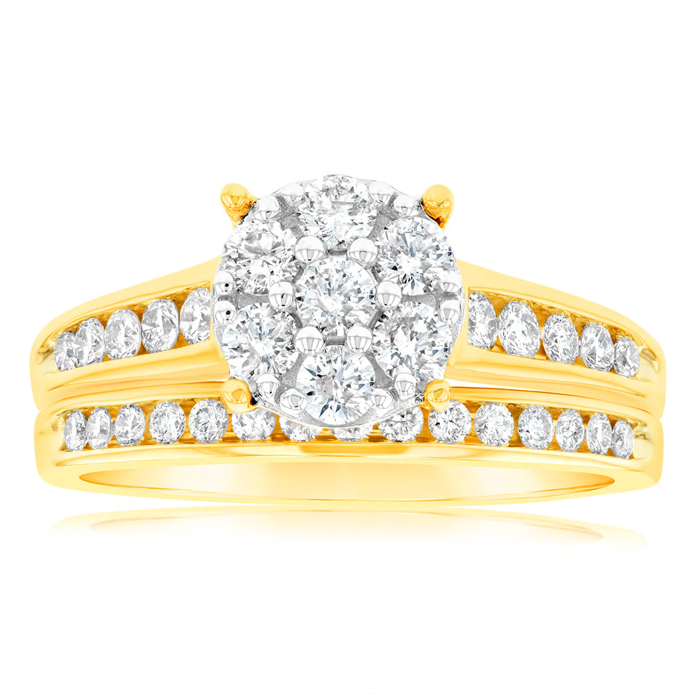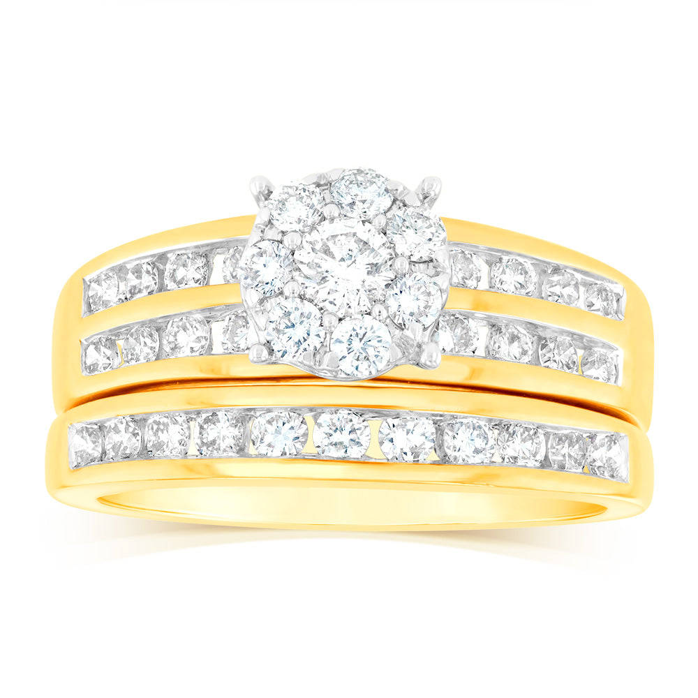 9ct Yellow Gold 1 Carat Diamond 2 Ring Bridal Set