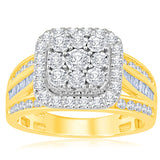 9ct Yellow Gold 1 Carat Diamond Cushion Cluster Ring
