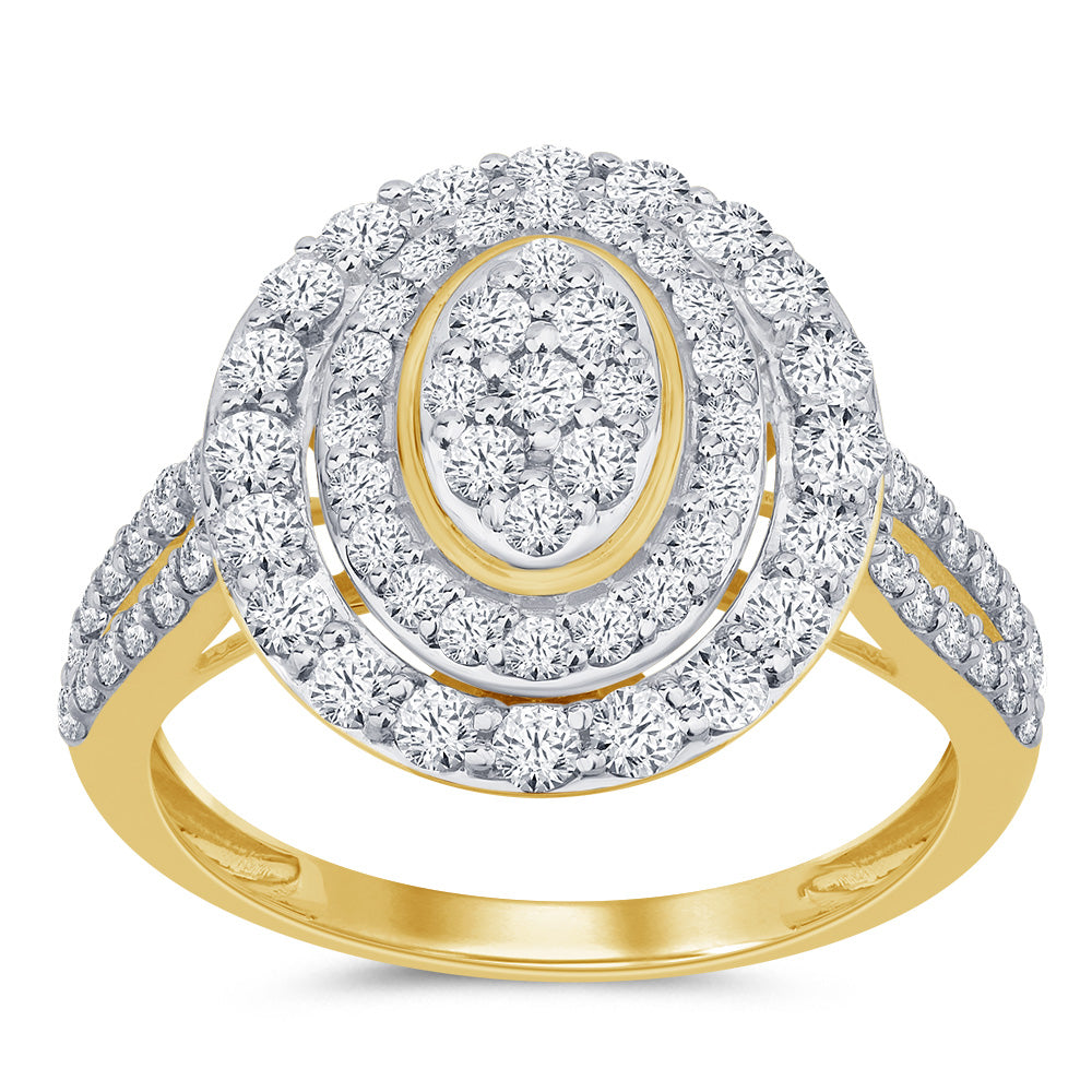 9ct Yellow Gold 1 Carat Diamond Oval Shape Cluster Ring
