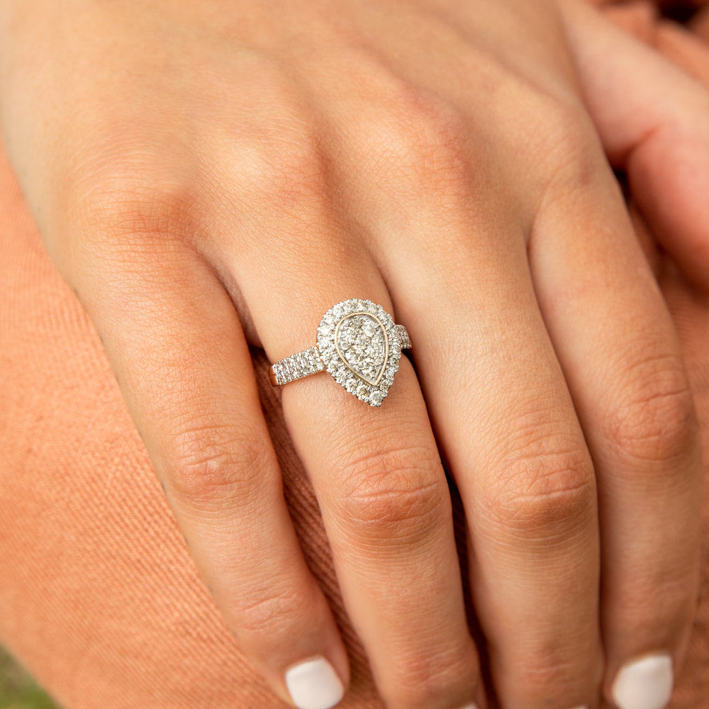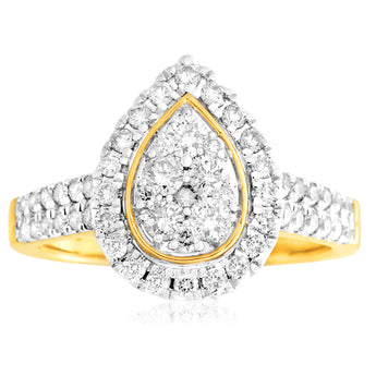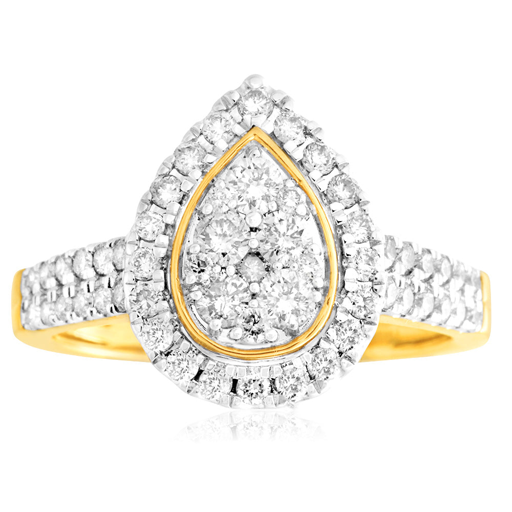 9ct Yellow Gold 1 Carat Diamond Pear Shape Cluster Ring
