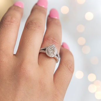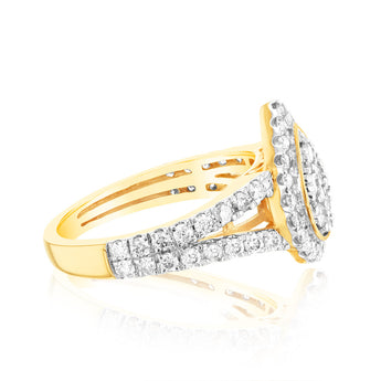 9ct Yellow Gold 1 Carat Diamond Pear Shape Cluster Split Shank Ring
