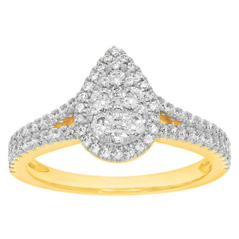 9ct Yellow Gold 1 Carat Diamond Pear Shape Ring with Split Shank