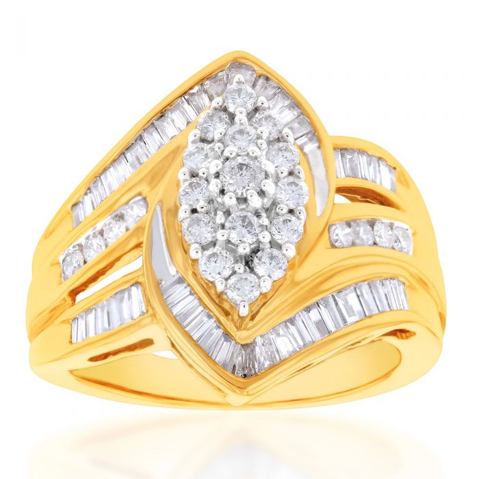 9ct Yellow Gold 1 Carat Diamond Ring Set with 63 Diamonds