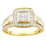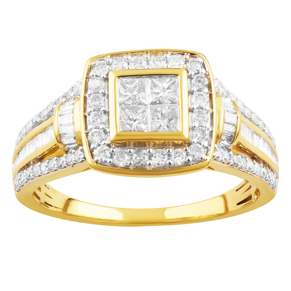 9ct Yellow Gold 1 Carat Diamond Ring with Princess Brilliant and Baguette Diamonds