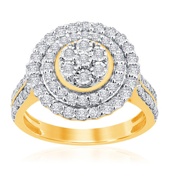 9ct Yellow Gold 1 Carat Diamond Round Shape Cluster Ring