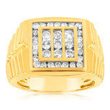 9ct Yellow Gold 1 Carat Mens Diamond Ring with 33 Brilliant Diamonds