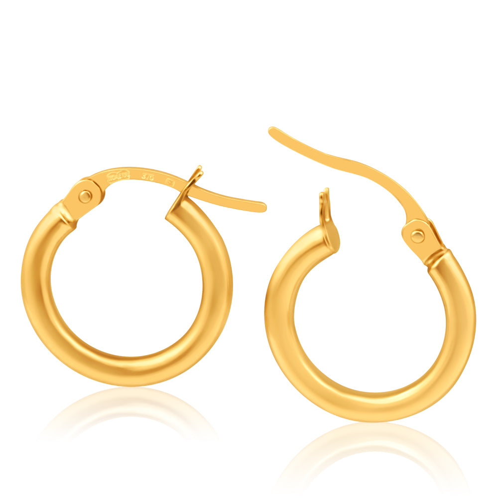 9ct Yellow Gold 10mm Plain Hoop Earrings Italian Made