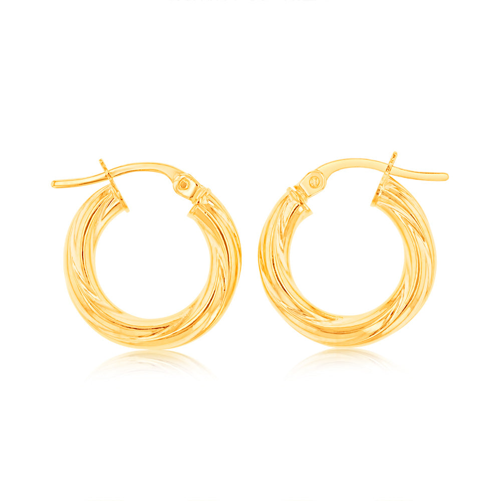 9ct Yellow Gold 10mm Small Twist Hoop Earrings