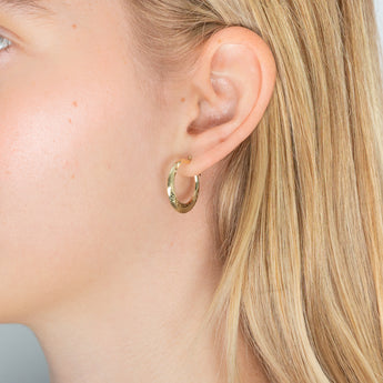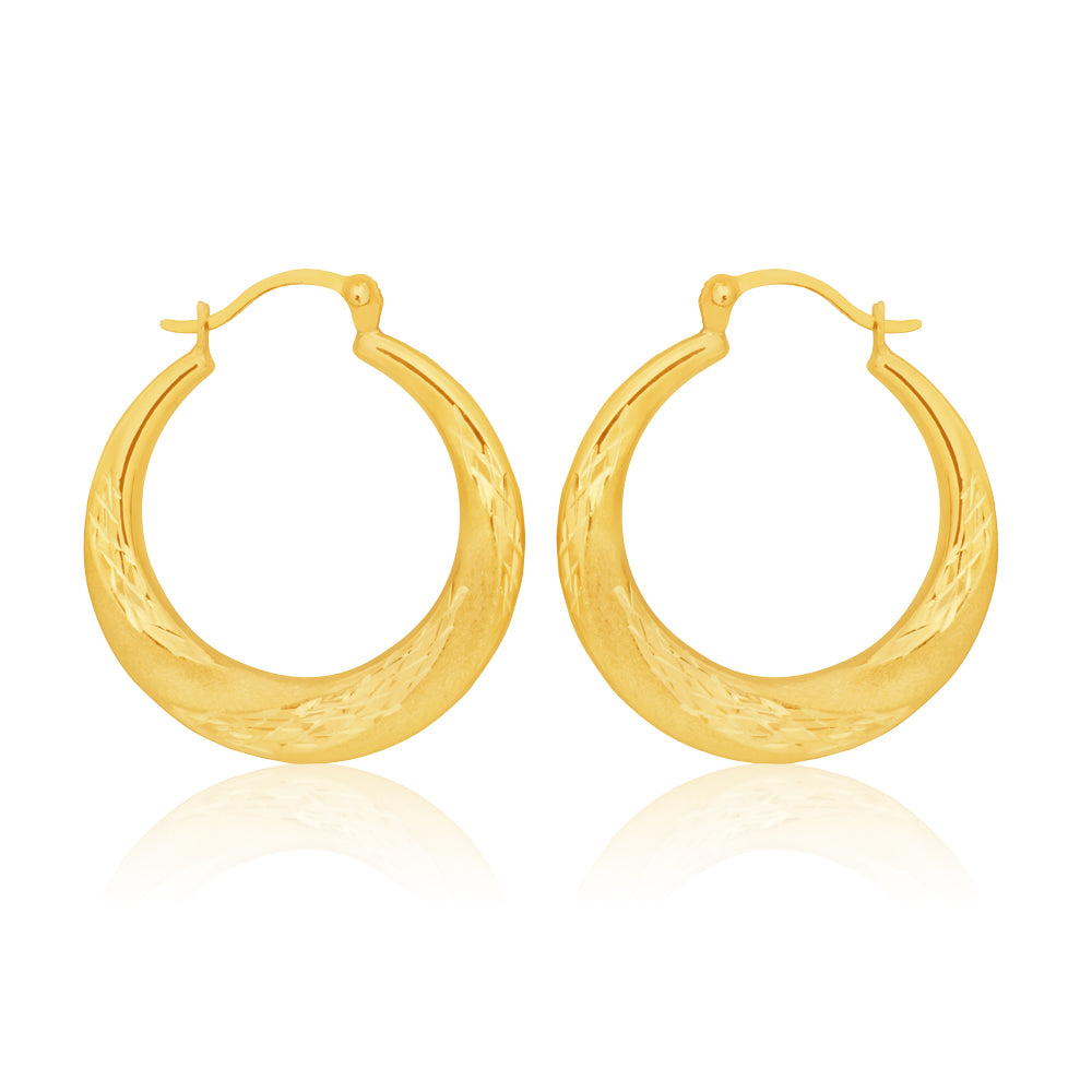 9ct Yellow Gold 15mm Creole With Diamond Cut Pattern Earrings