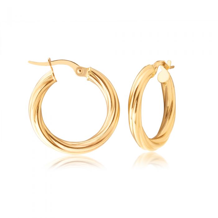 9ct Yellow Gold 15mm Twist Hoop Earrings